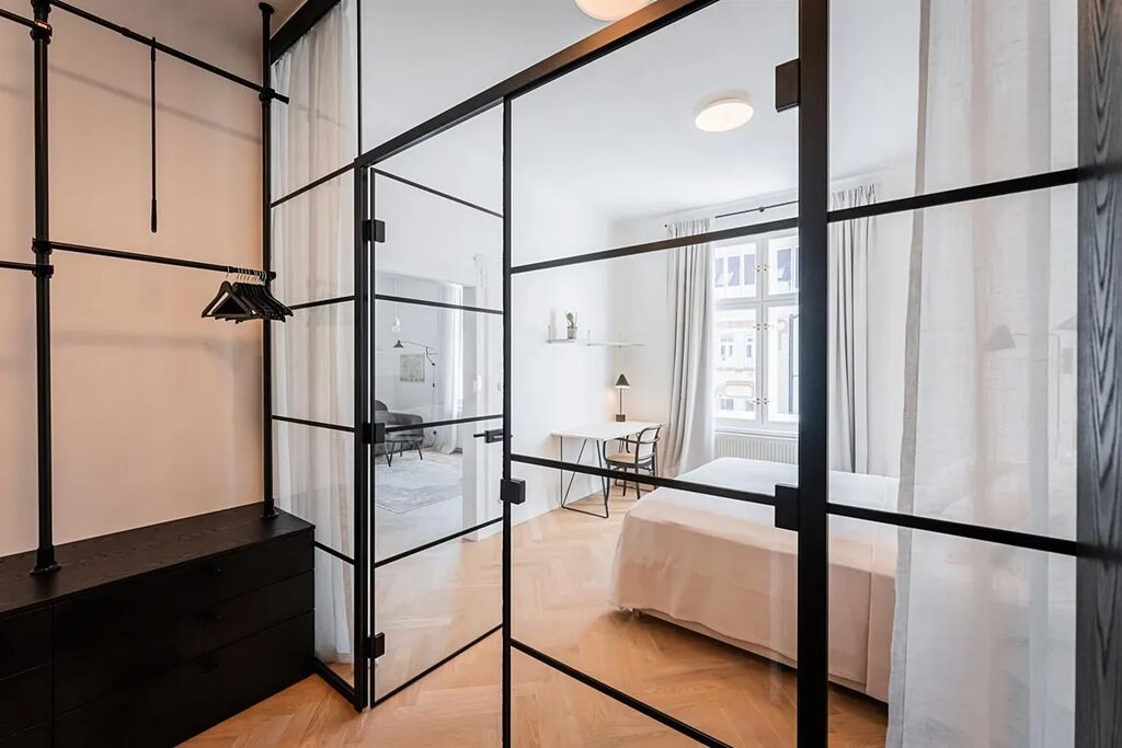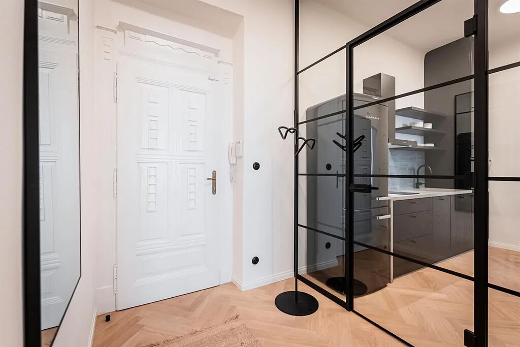 Interiér bytu dispozičně nabízí vstupní předsíň, krásný světlý obývací pokoj s jídelním prostorem a s původními funkčními kamny, modernou kuchyň plně vybavenou vestavěnými spotřebiči. Dále samostatnou ložnici, která disponuje vlastní šatnou. Komfortní koupelna je vybavená sprchovým koutem a toaletou. Zabezpečovací systém je součástí bytu.
