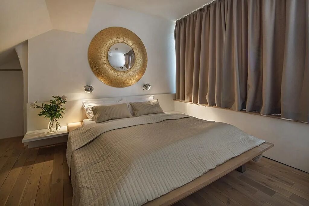 Interiér duplexu je vybaven designovým nábytkem. Duplex dispozičně nabízí obývací pokoj s moderním plně vybaveným kuchyňským koutem (vestavěná sklokeramická deska, myčka, mikrovlnná trouba, digestoř, lednice), světlou ložnici a koupelnu se sprchovým koutem a toaletou. Byt je klimatizovaný.