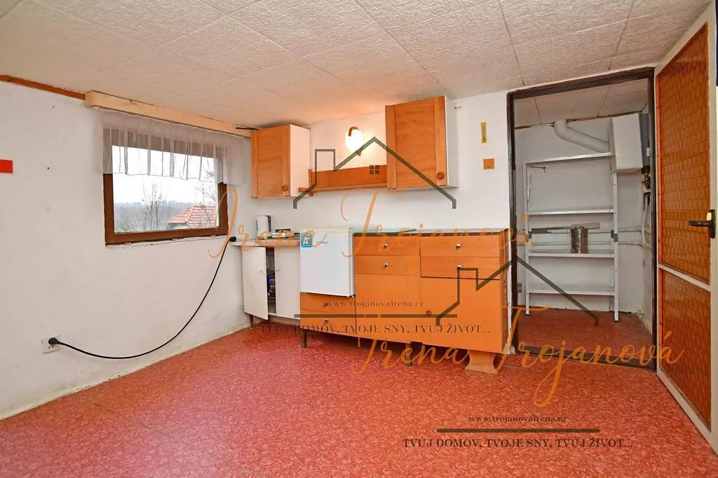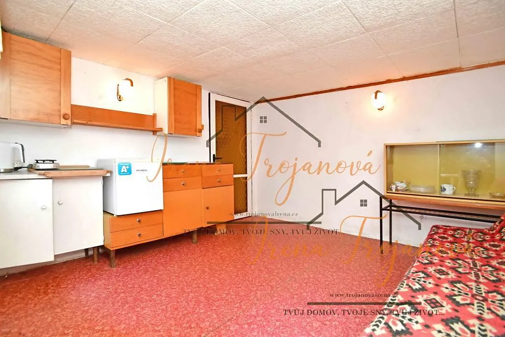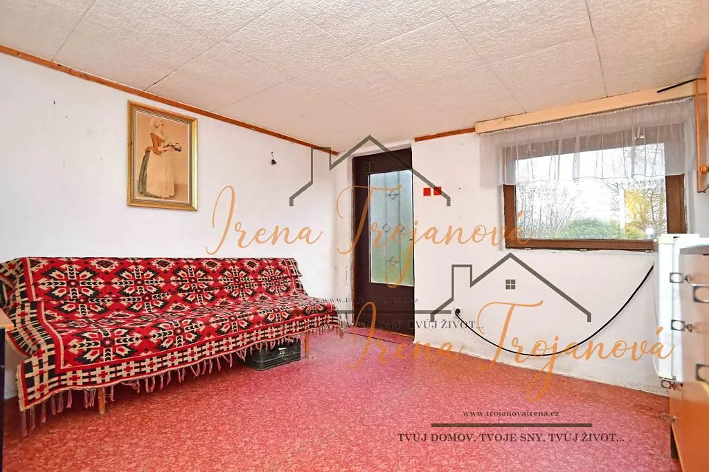 Chata je postavena ve svahu na zděné podezdívce, nepodsklepená, střecha sedlová. V přízemí se nachází malá kuchyňka s obývacím pokojem se vstupem na terasu orientovanou na JZ a koupelna s vanou. Do patra se dostanete z druhé části chaty, kde se nachází pokoj s výhledem do krajiny a WC. Na podlaze je lino, okna jsou nová dřevěná. Vytápění je řešeno kamny a přímotopy, odpad septikem. Elektroinstalace 220 i 380. Kopaná studna je společná pro 3 chaty s dostatečným množstvím vody. Teplou vodu zajišťuje průtokový ohřívač. Orientace oken na východ, jih a západ. Svažitý pozemek je terasovitě řešený, najdete zde vzrostlé stromy a skalky, zahradní domek a dřevník. Možnost parkování u pozemku. Příjezd po místní komunikaci, která je asfaltová.