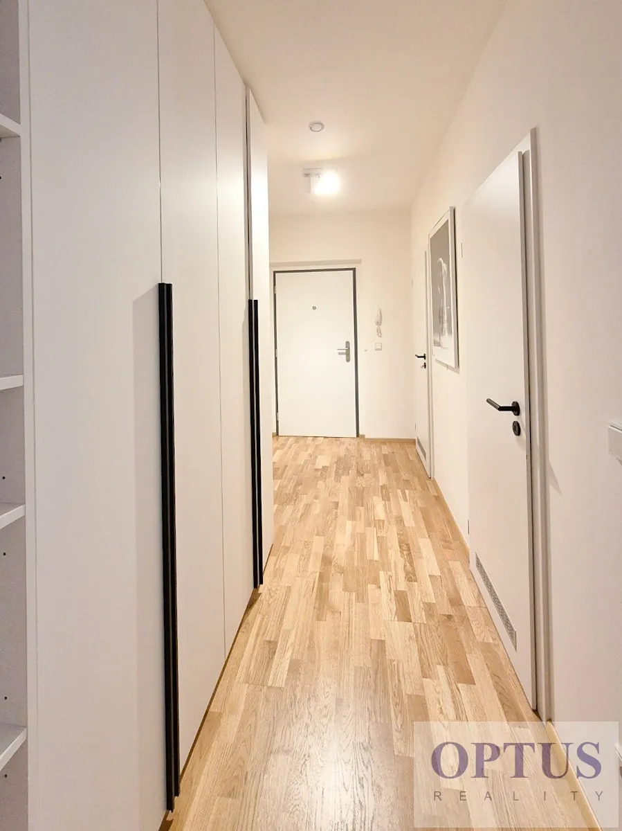 Nabízíme k pronájmu nový luxusně zařízený byt 2 + kuchyňský kout (56,9 m2) + lodžie 5,7 m2 s orientací na jih, situovaný ve 2. nadzemním podlaží nízkoenergetické budovy s výtahem v nedávno postaveném rezidenčním komplexu Port Karolina se společnou terasou v 7. patře.
