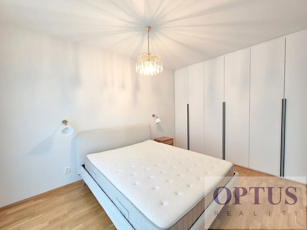 Vybavení bytu: Byt je vybaven luxusním designovým nábytkem a osvětlením dle fotografií včetně televizoru Samsung The Frame, vestavěnými skříněmi a nadstandardní kuchyňskou linka s vestavěnými spotřebiči (lednice s mrazákem, varná deska s vestavěnou digestoří, el. trouba, mikrovlnná trouba s funkcí pečení a myčka); dále je v bytě pračka se sušičkou, příprava pro vysokorychlostní internet - optický kabel s rychlostí až 1 Gb/s, dřevěné podlahy a centrální vytápění.