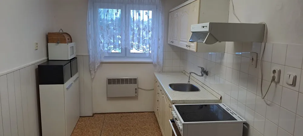 a to v těsné blízkosti bytového domu.Dům i samotný byt prošel zdařilou rekonstrukcí. Dům je zateplený s novou fasádou, okapy, má plastová okna a nové vstupní dveře. Byt prošel rekonstrukcí v roce 2019/20 mimo kuchyňskou linku.Ta je v dobrém stavu s elektrickou troubou se sklokeramickou deskou a digestoří.