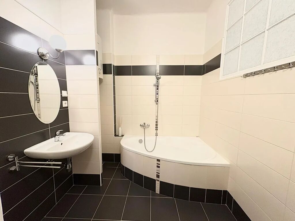-Koupelna - rohová vana se sprchovou masážní hlavicí, umyvadlem, přípojkou na pračku a plynovým kombinovaným kotlem.