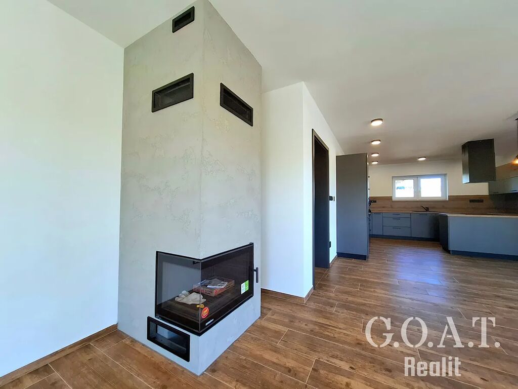 O teplo a úspory se stará elektrické podlahové vytápění v kombinaci s fotovoltaickým systémem pro ohřev teplé vody. Podlahy v kombinaci designové dlažby a vinylu v dekoru dřeva dodávají interiéru hřejivou atmosféru. Dominantou obývací části je krb.