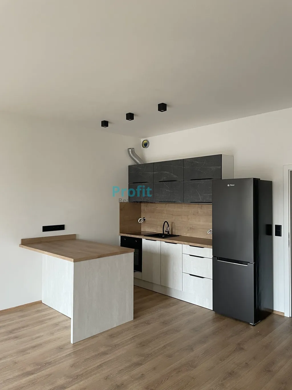 Bude obsahovat: dvouplotýnkovou indukční desku, troubu, digestoř, lednici, příprava pro myčku .