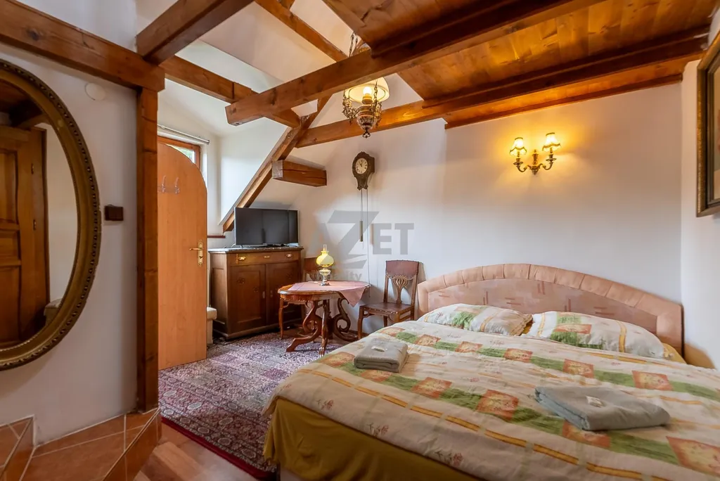 Druhé křídlo domu nabízí další pokoje, apartmány, prádelnu a úložné prostory. Celkem je zde 14 pokojů + byt pro majitele, s možností vytvoření až 56 samostatných bytových jednotek.