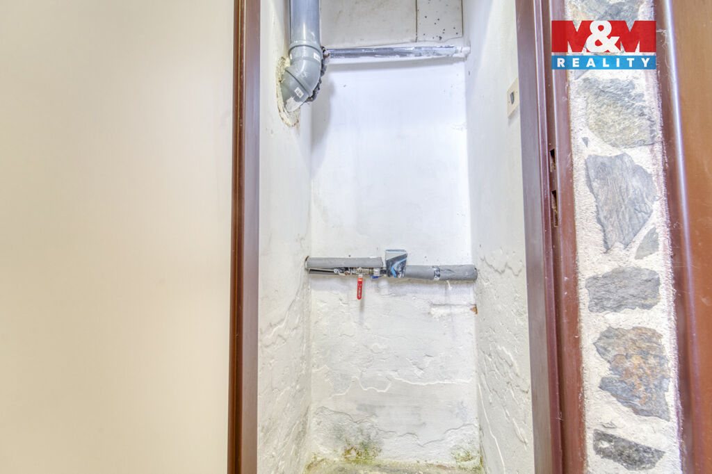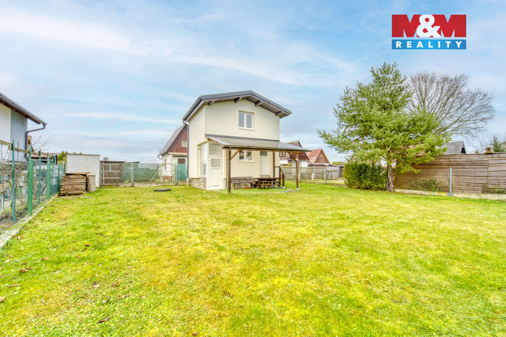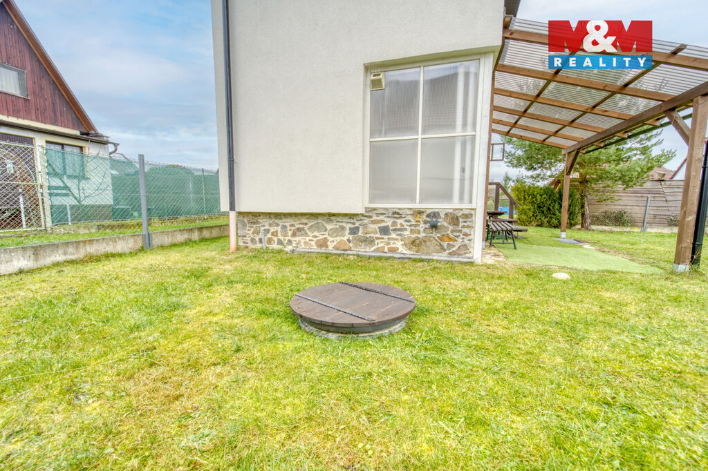 Voda je napojena na obecní vodovod, odpad sveden do žumpy (s plánovaným připojením na kanalizaci) a ohřev vody zajišťuje bojler. Pozemek o výměře 316 m² poskytuje dostatek prostoru pro relaxaci, posezení nebo menší zahrádku.