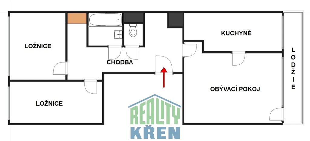 Obývací pokoj se vstupem na zasklenou lodžii 16 m2, kuchyně 10 m2, 2x ložnice 12m2 a 11 m2, koupelna s vanou 4 m2, WC 1 m2, chodba 22 m2. Byt v původním udržovaném stavu s umakartovým jádrem, kompletně vyklizen. K bytu náleží sklep v suterénu domu 4 m2. Dům po kompletní rekonstrukci. Veškerá občanská vybavenost v místě, výborná dopravní dostupnost.