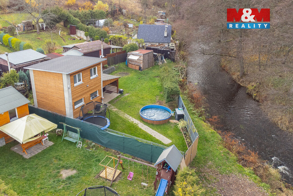 Nabízíme k prodeji novou, kompletně vybavenou chatu o užitné ploše 47 m² v oblíbené části Karlových Varů – Staré Roli. Jedná se o ideální místo pro víkendový odpočinek i sezónní pobyt v klidné lokalitě s výbornou dostupností města. Chata nabízí příjemné a moderní zázemí. Součástí je koupelna se sprchovým koutem a pračkou, ohřev teplé vody zajišťuje bojler. Kuchyňská linka je vybavena elektrickým sporákem, lednicí s mrazákem a dostatkem úložného prostoru. K pohodlí přispívá také kamerový systém, který zajišťuje bezpečí a dohled nad nemovitostí. Na pozemku o výměře 278 m² najdete bazén, kryté zahradní posezení a také praktickou kůlnu na zahradní náčiní, která zároveň slouží jako malá dílna. Pozemek je navíc rozšířen o další část, dlouhodobě pronajatou od města za 2 000 Kč ročně. Chata je napojena na sezónní vodovod, odpad je sveden do septiku s trativodem. Pokud hledáte klidné, udržované místo pro relax v dosahu města, tato chata ve Staré Roli je skvělou volbou.