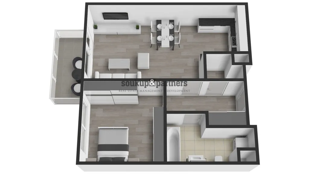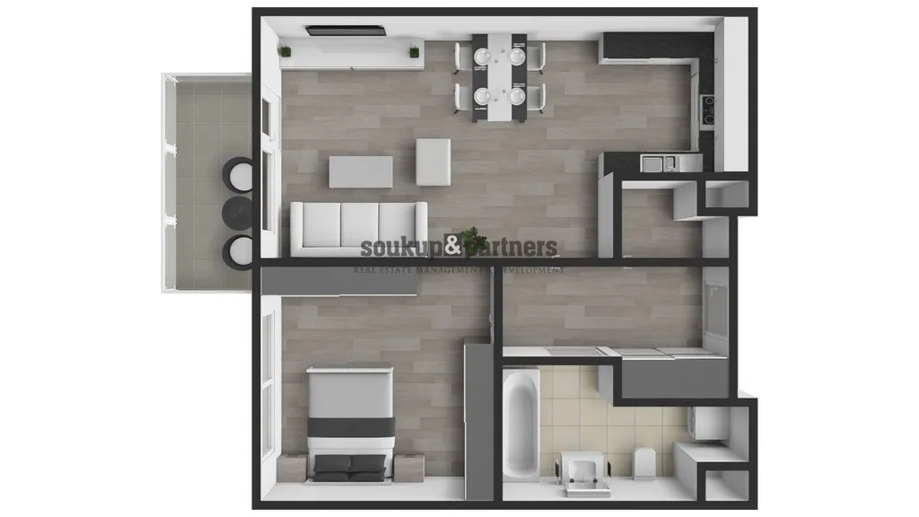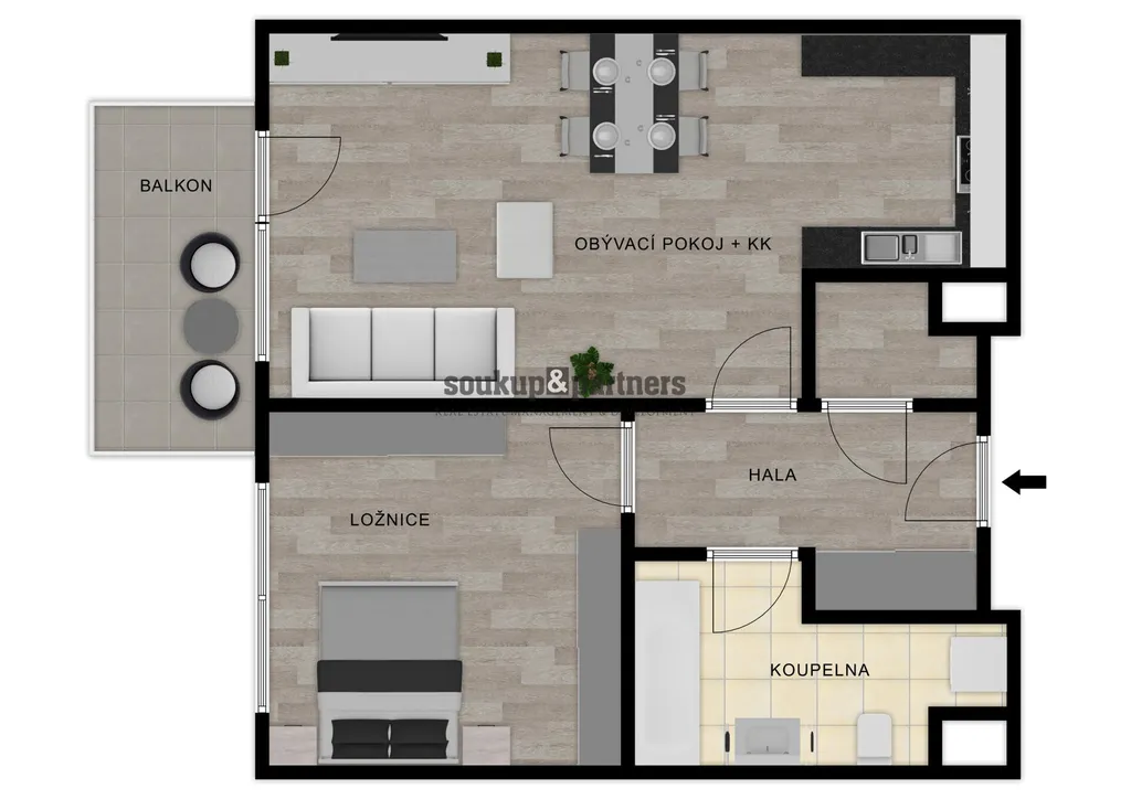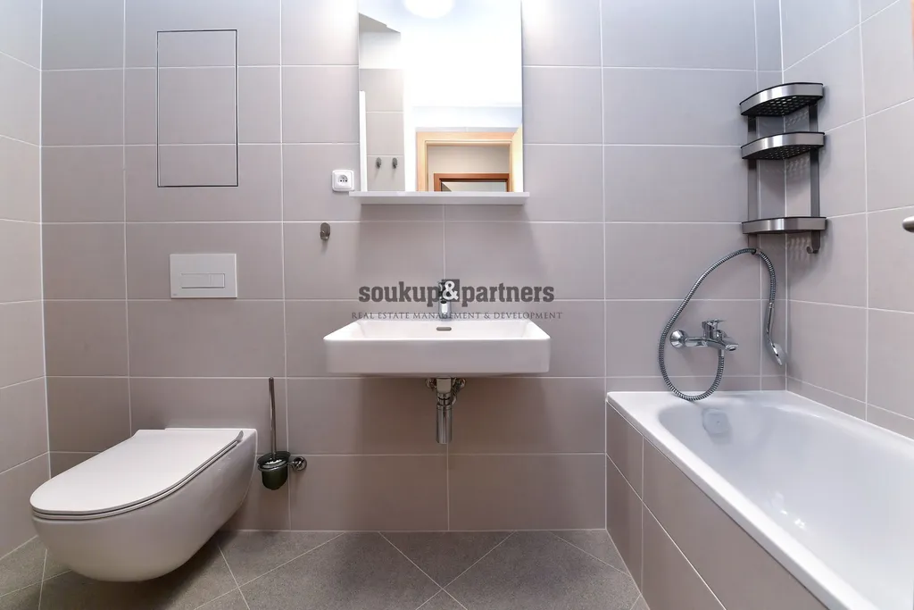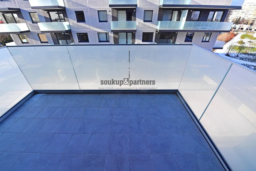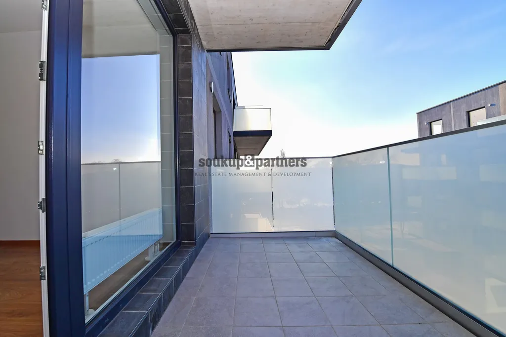 Pronájem bytu 2+kk o výměře 54,7m² + balkon (6,6 m²) + garážové stání, který se nachází ve 4. nadzemním podlaží novostavby v projektu Nad Krocínkou, Praha 9 - Prosek.