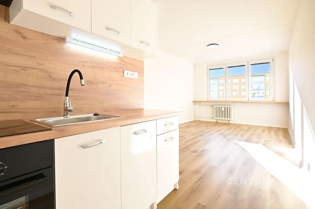 Ráda bych vám nabídla k podnájmu krásný byt po celkové rekonstrukci 2+kk o výměře 40 m² v ulici Josefa Ševčíka v Mostě. Byt je nově zrekonstruován a nachází se v 5. patře panelového domu. Disponuje vstupní chodbou, odkud se vchází do koupelny se sprchovým koutem a toaletou. Koupelna je obložena velkoformátovými dlaždicemi se vzorem mramoru. Z chodby se dostaneme i do samostatného pokoje. Vedle této místnosti se nachází obývací prostor s kuchyňským koutem. Kuchyňská linka je úplně nová. Vybavená je elektrickou troubou se sklokeramickou deskou a digestoří.