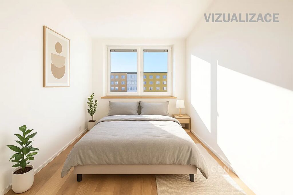 V celém bytě jsou nové dveře, osvětlení a položeny plovoucí podlahy. Obývací prostor a ložnice jsou na fotografiích i vizualizovány.