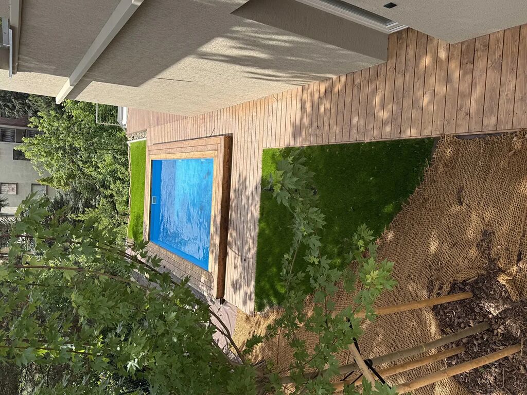 Z každé obytné místnosti je vstup na terasu či zahradu o celkové výměře 309 m², kde se nachází soukromý bazén 6 × 3 m. Zahrada je osazena plně automatickým zavlažovacím systémem napojeným na vlastní retenční nádrž. Vysoký standard zahrnuje designové prvky jako sametové koupelnové stěrky Ottocento, podomítkové baterie Hansgrohe, bezfalcové dveře s černým kováním, třívrstvé dubové podlahy, kuchyně a šatní skříně na míru, skrytá klimatizace DAIKIN, černé skleněné vypínače i vestavěné LED osvětlení, videotelefon s kamerou. V ceně bytu je veškeré vybavení, parkovací stání a sklep.