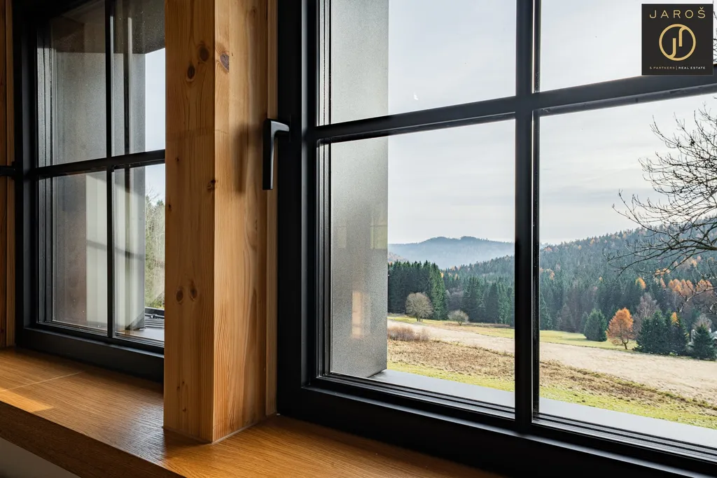 Spodní podlaží tvoří klidová část s prostornou ložnicí, moderní koupelnou a chodbou se zázemím. O patro výš se otevírá impozantní obývací pokoj s kuchyňským koutem o ploše více než 38 m², který díky velkým oknům působí vzdušně a svěže. Druhý pokoj s koupelnou doplňuje funkčnost této jednotky a umožňuje komfortní využití pro rodinu, hosty či investiční provoz formou krátkodobých pronájmů.