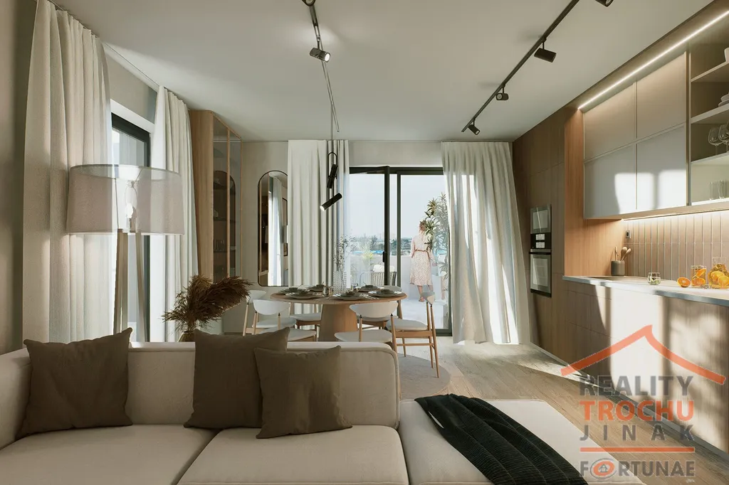 V novém developerském projektu rezidence Kristian Vám nabízíme prodej, moderního a nízkoenergetického bydlení v bytu 4+kk s balkónem ve vyhledávané lokalitě v Hradci Králové – Moravské Předměstí. Bytová jednotka se nachází ve 2. NP zděného bytového domu, celková užitná plocha 113,3 m2, 2 x balkón (5,7 m2 a 4 m2), 1x šatna (4,6 m2). K bytu náleží 1x vnitřní parkovací stání. Dispozice: vstupní chodba, obývací pokoj s kuchyňským koutem, jídelnou, 3x pokoj, koupelna s WC, WC, šatna. Vytápění: ústřední dálkové. Ve standardním provedení: plastová okna hranatá s izolačním trojsklem, vinylové podlahy KPP – výběr z 12 typů dekorů, koupelna s keramickou dlažbou La Ceramica Factory – výběr ze 4 dekorů, obklady Rako Systém, umyvadlo keramické se stojánkovou pákovou baterií, vana bílá akrylátová obdélníková. WC závěsné bílé. Použité materiály kombinují moderní technologie a udržitelnost a především snižují energetické náklady.