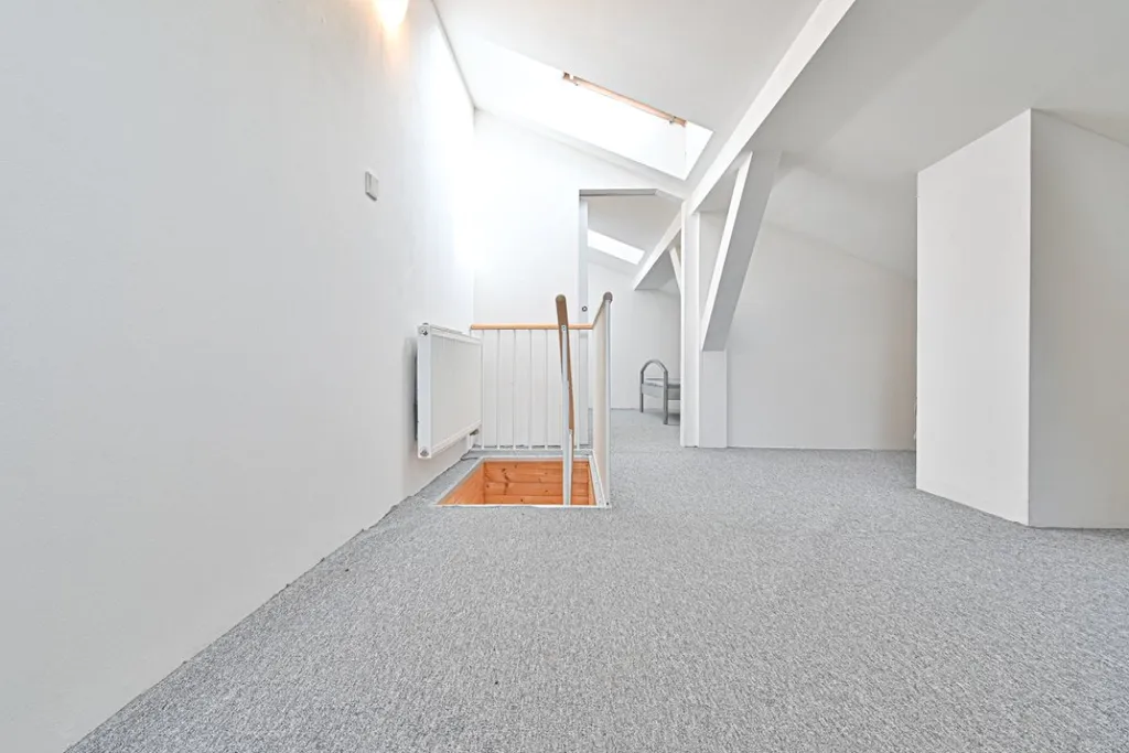 Po schodech se vstupuje do horního patra, kde je jedna místnost – prostor připomínající podkroví (něco jako půda). Může sloužit jako pracovna, relaxační zóna nebo úložný prostor.