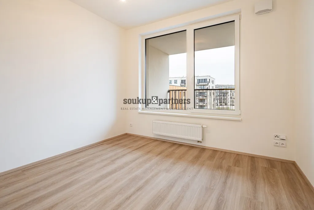 Interiér dále doplňuje vinylová podlaha v dekoru dřeva, kvalitní interiérové dveře Sapelli a protipožární vstupní dveře. V obou obytných místnostech je přípojka na optický internet (až 2Gb/s). Byt je navíc vybaven tzv. průvětrníky, jež umožňují cirkulaci vzduchu i při zavřených oknech.