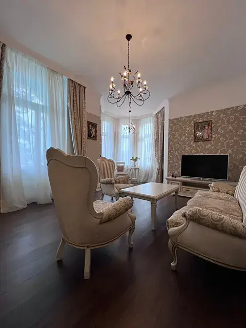 Nabízíme k prodeji nádherný, výjimečný, luxusně vybavený, slunný byt se dvěma balkóny a mansardou na oblíbené, prestižní adrese Krále Jiřího v Karlových Varech, jen pár metrů od karlovarských kolonád a lázeňských lesů.