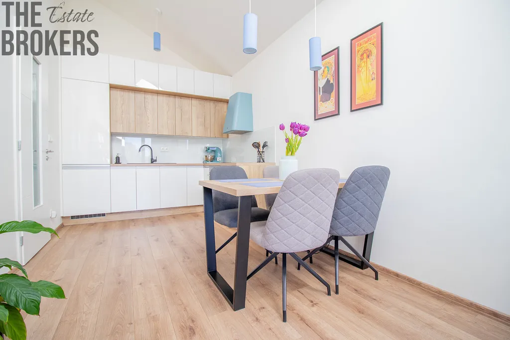 Byt zaujme obývacím pokojem s elegantní kuchyňskou linkou vybavenou spotřebiči značky Electrolux. K dispozici je hlavní ložnice s přímým vstupem na balkon o velikosti 6,08 m². Byt dále nabízí moderní koupelnu vybavenou sprchovým koutem a toaletou.