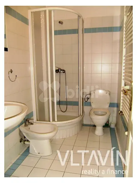 Kuchyň je vybavená kuchyňskou linkou, plynovým sporákem, el. troubou, lednicí, odsavačem par a přípojkou na pračku. V koupelně je sprchový kout, bidet a toaleta. Teplou vodu a topení zajišťuje plynový kotel. Na podlaze jsou parkety a dlažba.