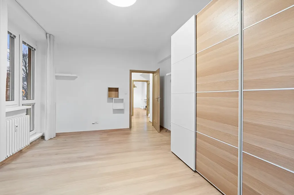 Byt je svojí rozlohou velmi prostorný. V bytě jsou 2 veliké neprůchozí pokoje, krásná kuchyně (na míru vybavena spotřebiči) s obývacím pokojem, koupelna s vanou, samostatné WC s prostorem na pračku. Nedílnou součástí je veliká předsíň s vestavěnými skříněmi a úložnými prostory.