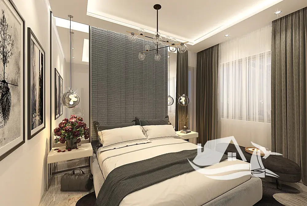 Dispozice apartmánu je navržena tak, aby poskytovala dostatek prostoru pro pohodlný život – světlý obývací pokoj propojený s kuchyní, dvě samostatné ložnice a dobře řešená koupelna. Velká okna zajišťují přirozené světlo během celého dne a příjemné propojení interiéru s okolním prostředím. Apartmán disponuje také vlastním úložným prostorem, což výrazně zvyšuje praktičnost a pohodlí při každodenním užívání.