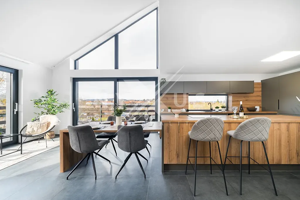 Menší jednotka za 11 490 000 Kč má dispozici 3+kk a užitnou plochu 125 m². Informace o ní najdete v samostatném inzerátu na webu naší kanceláře.