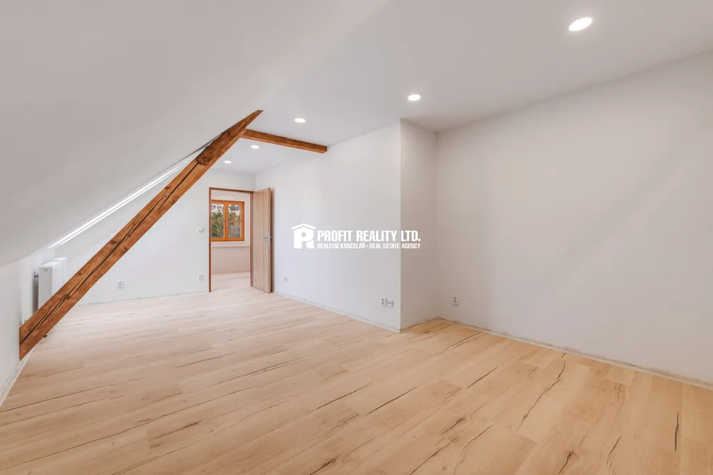 Zprostředkujeme vám prodej rodinného domu ve městě Mirovice, umístěného v klidné ulici Husova, poblíž historického náměstí. Objekt prošel kompletní rekonstrukcí, jen krovy a střešní krytina mají staří 11 let. Dům je z malé části podsklepený. V přízemí se nachází vstupní předsíň, pokoj s přípravou na kuchyňskou linku, obývací pokoj, koupelna s vanou, samostatná toaleta a technická místnost a kotelna. Podlahová plocha přízemí činí 79 m2. V rámci rekonstrukce jsou zde nové podlahy, izolace, podlahová krytina, dlažby, rozvody vody, elektřiny, odpady, plynové topení včetně nové přípojky a kotle, koupelna, příprava pro kuch. linku, okna, dveře, nové stropní trámy, sádrokartonové podhledy + izolace. Nová pojistková skříň. Z předsíně se po schodišti dostanete do podkroví, které se skládá z dvou ložnic se střešními okny, koupelny se sprchovým koutem a toaletou a předsíně, kde lze vybudovat menší kuchyňskou linku. Při rekonstrukci byla zhotovena nová dvojitá skladba podlahy, izolace v předstěnách, zateplení střechy, zateplení štítů, nové rozvody vody, elektřiny, topení, příprava pro malou kuch. linku, nové podlahoviny, sádrokartonové systémy, nová střešní okna dřevěná Velux. Nová pojistková skříň. Zahrada je za domem, s věcným břemenem chůze a jízdy pro vstup na zahradu, z domu je přístupná z obývacího pokoje francouzskými dveřmi. Ve městě Mirovice je kompletní občanská vybavenost.