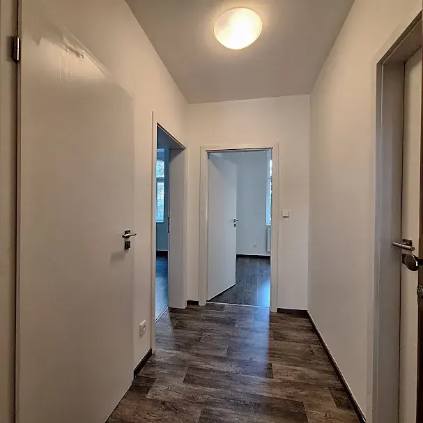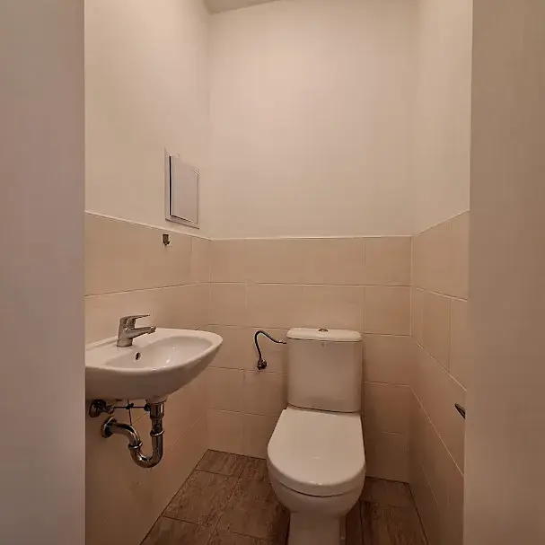 Dispozice bytu tvoří 2 pokoje, které jsou každý na jiné straně bytu. Prostorná kuchyně má vstup do jednoho z nich a je oddělena dveřmi. Byt se pronajímá nezařízený (bez nábytku), ale vybaven kuchyňskou linkou se spotřebiči (horkovzdušná el. trouba, sklokeramická varná deska, odsavač par, myčka, kombinovaná lednice). V koupelně je umyvadlo, vana a přípojka na pračku (ta není součástí vybavení), samostatné WC. Na podlahách byla použita plovoucí podlaha, dlažba. Okna kuchyně a jednoho z pokojů, jsou situována do klidné ulice. Okna druhého pokoje , směřují do klidného vnitrobloku. K bytu náleží sklepní koje. Bydlení je vhodné pro jednotlivce, pár, či rodinu s 1 malým dítětem . V okolí veškerá občanská vybavenost - restaurace, obchody, kavárny, sport centrum Squash Holešovice, golfové hřiště (driving range) Rohanský ostrov, Galerie moderního umění DOX, známá Pražská tržnice a mnoho divadel a hudebních klubů – SaSaZu, divadlo La Fabrika , Rock Opera a mnoho dalších možností. V blízkosti je cyklostezka vedoucí do Troje a přes Libeňský most pokračující do Vysočan a Hloubětína. Rychlé dopravní spojení do centra – pár zastávek tramvají k metru Vltavská, Palmovka a Nádraží Holešovice.