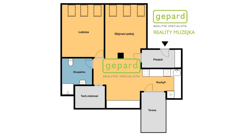 Byt o ploše 75 m2 je umístěn ve 2.patře. Je tvořen předsíní, koupelnou s WC a sprchou, ložnicí a obývacím pokojem s kuchyňským koutem, technickou místností a terasou. Byt je vybaven kuchyňskou linkou se spotřebiči ( lednice s mrazákem, elektrická varná deska, elektrická trouba, digestoř, myčka, pračka), v předsíni a v obývacím pokoji jsou vestavěné skříně. Ohřev vody elektrickým boilerem, vytápění elektrickým infrapanely. V bytě je klimatizace. Byt bude připravený k nastěhování od 1.2.2026.