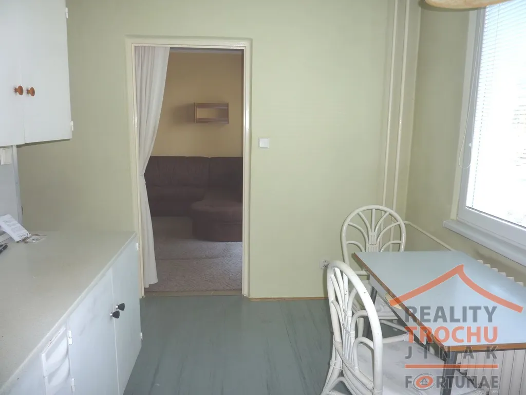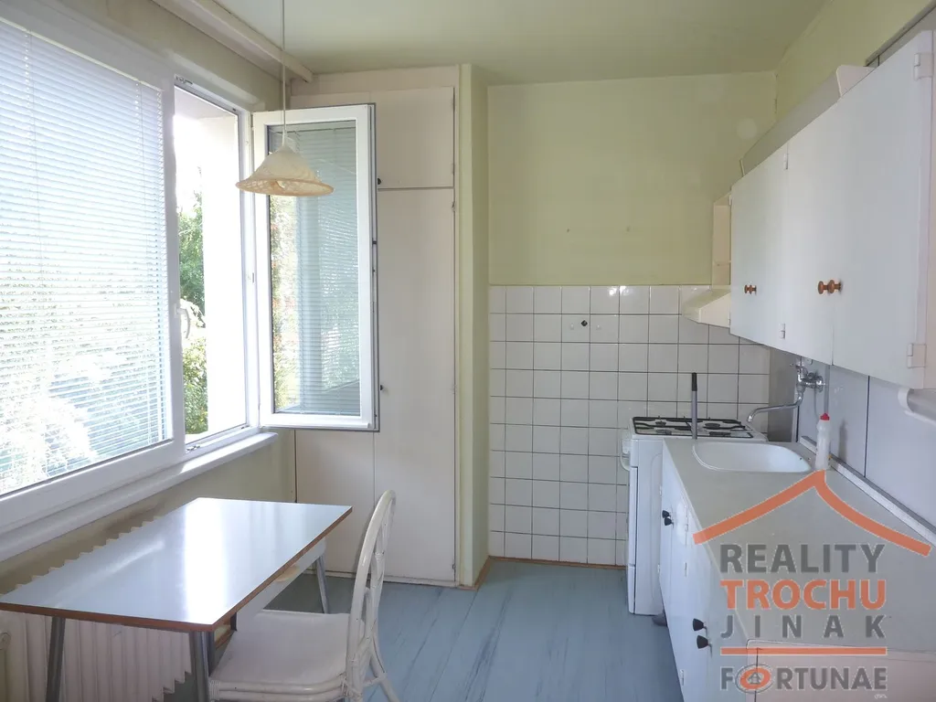 Dispozice: 1 obytná místnost se vstupem na lodžii, kuchyňský kout s jídelnou, koupelna (vana), samostatné WC, chodba (vestavěné skříně), sklepní kóje, topení: ÚT – dálkové. Parkování před domem, veškerá občanská vybavenost v místě. Dobrá dopravní obslužnost – zastávka MHD cca 50 m.