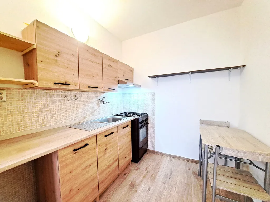 Nabízíme pronájem 40 m² bytu 1kk s lodžií v 6. patře panelového domu Kladno - Kročehlavy, Švédská ul. Plastová okna s roletami a záclonami, podlahy dlažba a vinyl. Kuchyňská linka s kombinovaným sporákem, jinak nezařízeno. V koupelně vana, přípojka na pračku, WC samostatné. K bytu náleží sklep cca 2 m² . Nájem 12.000 Kč, poplatky na 1 osobu 2.682 Kč, 2. osoba + 1.000 Kč, elektřina 1.000 Kč/měs. a plyn 250Kč/měsíc. Kauce 15.000 Kč, provize 12.000 + DPH. Společné prostory domu vč. dvou výtahů jsou rekonstruované, upravené a čisté, slušní sousedé. V přízemí domu je kolárna. Veškerá občanská vybavenost v bezprostřední blízkosti (nákupní centrum Jih) vč. zastávky bus směr Praha, vlak nedaleko. Parkování v okolí dobré, jedná se o slepou ulici. Volné ihned.