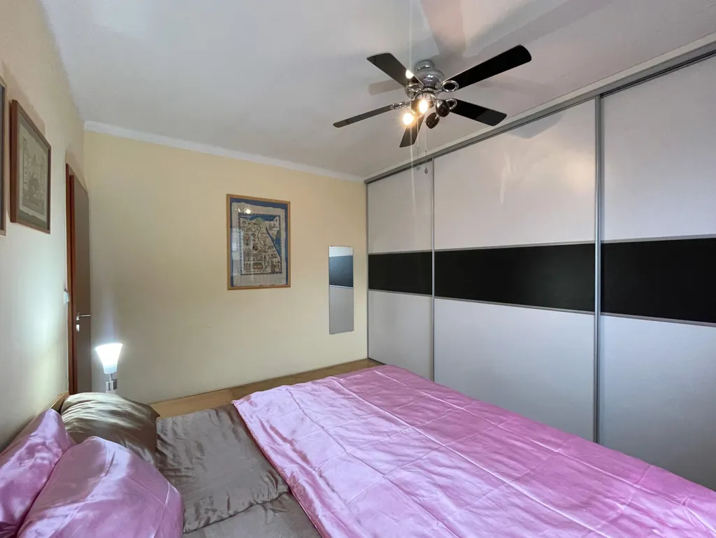 Kuchyně je plně vybavena a potěší každého, kdo má rád vaření. K dispozici je kvalitní trouba s plynovými hořáky, vestavěná myčka, jídelní stůl se čtyřmi židlemi a praktická spíž s policemi. Lednice je chytře ukrytá právě ve spíži, takže kuchyň působí čistým a elegantním dojmem. Obývací pokoj nabízí komfortní koženou sedačku (pouze 2 roky stará) a nadčasový nábytek na míru. Součástí je konferenční stolek a promyšlená obývací stěna, která kombinuje knihovnu, úložné prostory i pracovní kout s psacím stolem. V ložnici najdete velkou vestavěnou skříň, pohodlnou postel a také samostatnou šatnu – výborné místo pro organizaci oblečení, sportovních věcí i sezónních doplňků. Už při vstupu Vás uvítá prostorná chodba – skutečné srdce bytu, ze které jsou samostatné vstupy do všech neprůchozích místností. Koupelna je vybavena sprchovým koutem, umyvadlem se skříňkou a pračkou s horním plněním. WC je samostatné. Z kuchyně je vstup na balkon o ploše 4,5 m², kde si můžete vychutnat ranní kávu nebo večerní posezení.