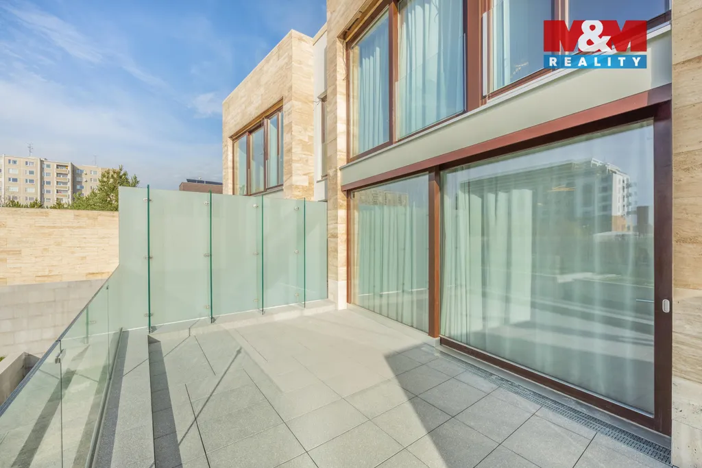 Nabízíme naprosto výjimečný řadový rodinný dům ve velmi vyhledávané části Prahy – Libuši. Tato novostavba nabízí čtyři nadzemní podlaží s celou užitnou plochou 279m². Moderní a prostorný interiér zahrnuje sedm místností a čtyři koupelny s toaletou. Dům je postaven z prémiových materiálů a je vybaven vestavěnými skříněmi, centrálním vytápěním, bezpečnostním systémem, přípravou pro venkovní elektrické žaluzie. K dispozici jsou dvě terasy – prostorná střešní terasa o ploše 84 m² a další terasa v prvním patře o velikosti 38 m² odstíněná od sousedních teras. Zahrada za domem má rozlohu 96 m², předzahrádka před domem má pak 32 m². Fasáda celého domu je obložena kamenným obkladem z travertinu. Dvě podzemní garážová stání zajišťují komfortní parkování a vstup z garáže přímo do domu. Nemovitost se nachází v klidné části uzavřeného areálu hned vedle budoucí stanice metra C a je připravena k okamžitému nastěhování. Nepropásněte tuto jedinečnou příležitost. Energetický štítek B.