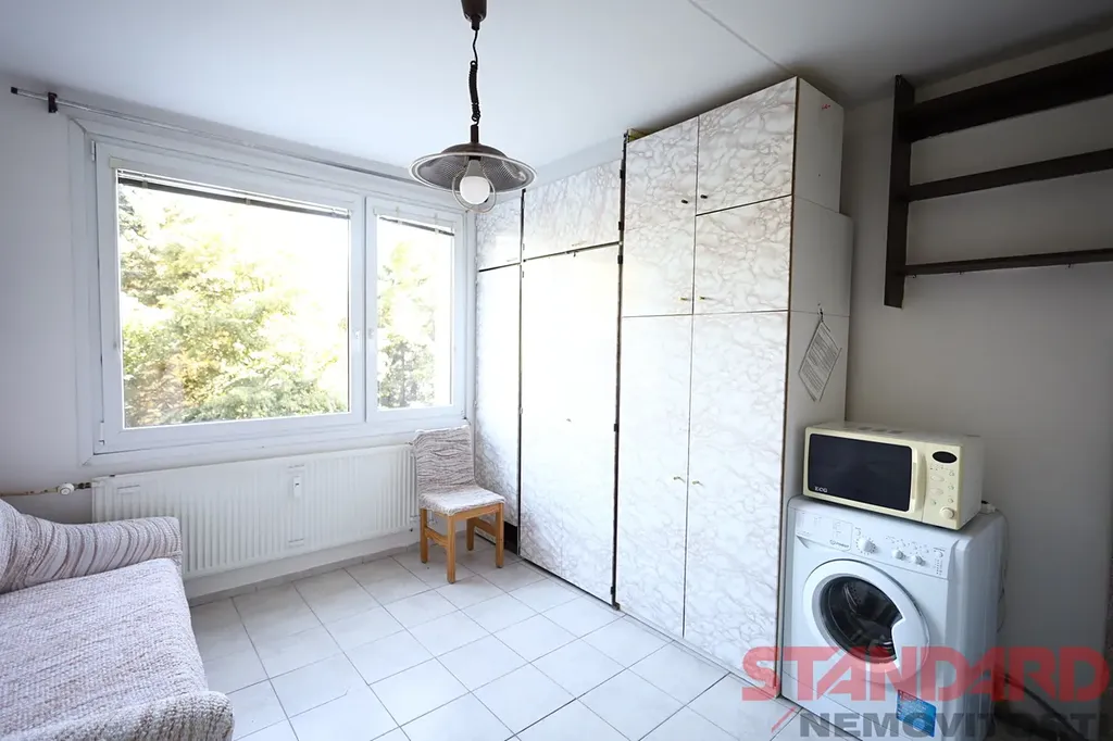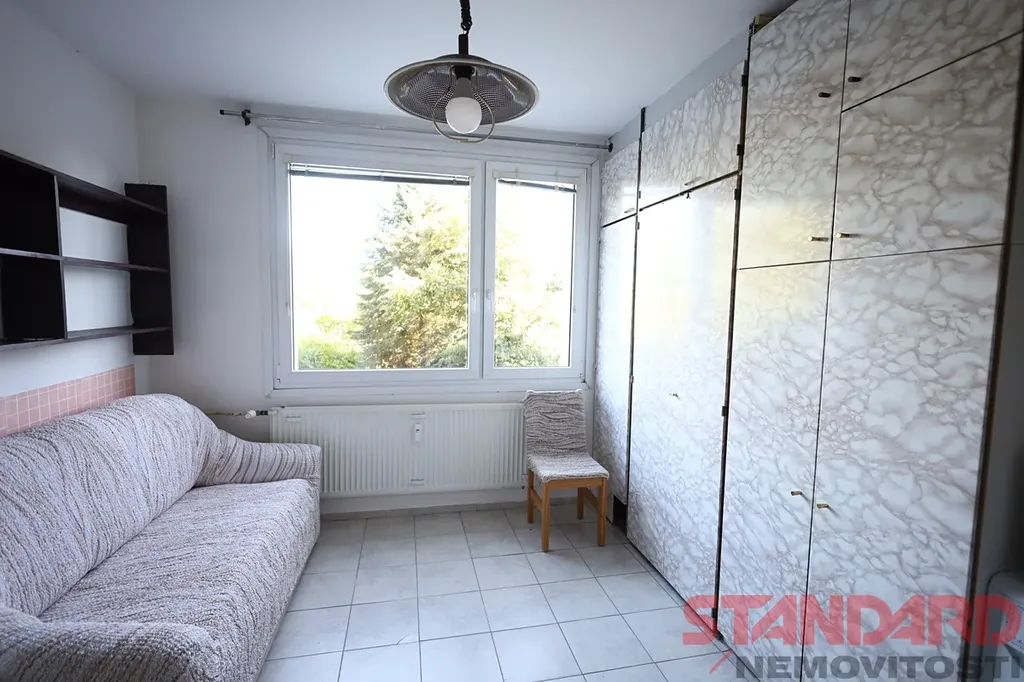 Okna jsou v celém bytě plastová, opatřená vnitřními žaluziemi a jsou orientována do zeleně vnitrobloku.