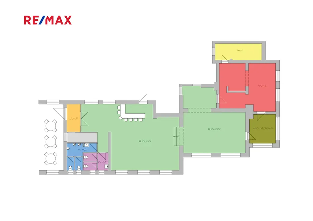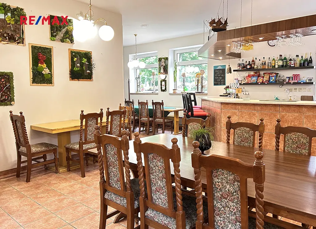 Dobře dispozičně řešený prostor restaurace s kapacitou 70 míst umožňuje pořádání příležitostných akcí jako výstavy, hudební vystoupení, besedy, setkání. Restaurace o celkové výměře 190m² disponuje prostornou vybavenou kuchyní, skladovacími prostory, salonkem, oddělenými WC.