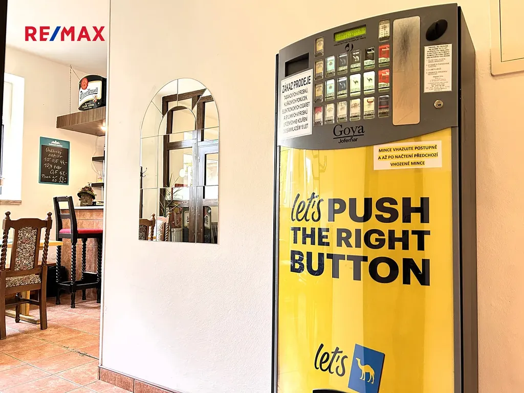 Vybavení: jukebox, nábytek (stoly, židle a další zařízení), krb, bar se zařízením, automat na cigarety, lze přenechat i sklo a další vybavení dle domluvy.