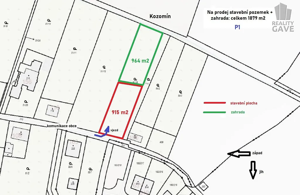Nabízíme k prodeji stavební pozemek P1 určený k výstavbě rodinného domu (případně dvojdomu), nacházející se v klidné a vyhledávané lokalitě obce Kozomín. Pozemek má pravidelný tvar a je celodenně slunný, což umožňuje efektivní zastavění i výborné dispoziční řešení budoucí stavby.