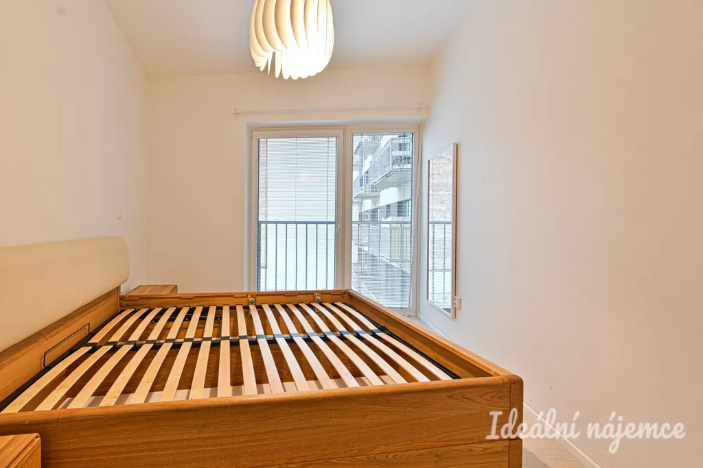 Byt se nabízí vybavený dle fotografií. Kuchyně disponuje lednicí s mrazákem, elektrickou troubou, varnou deskou, myčkou, digestoří, barovým posezením se židlemi a dostatkem úložného prostoru. Obývací část je zařízena skříní a policemi. V ložnici najdeme manželskou postel s roštem a další úložný prostor. Koupelna je vybavena sprchovým koutem, umyvadlem, pračkou a toaletou.