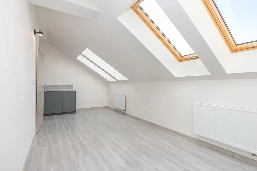 Nabízíme k pronájmu útulný byt 1+kk o velikosti 30 m² s praktickým druhým patrem o výměře 5 m², které je ideální jako prostor na spaní nebo pro úložné účely. Byt se nachází v 5. nadzemním podlaží, v posledním patře budovy na Košické ulici.