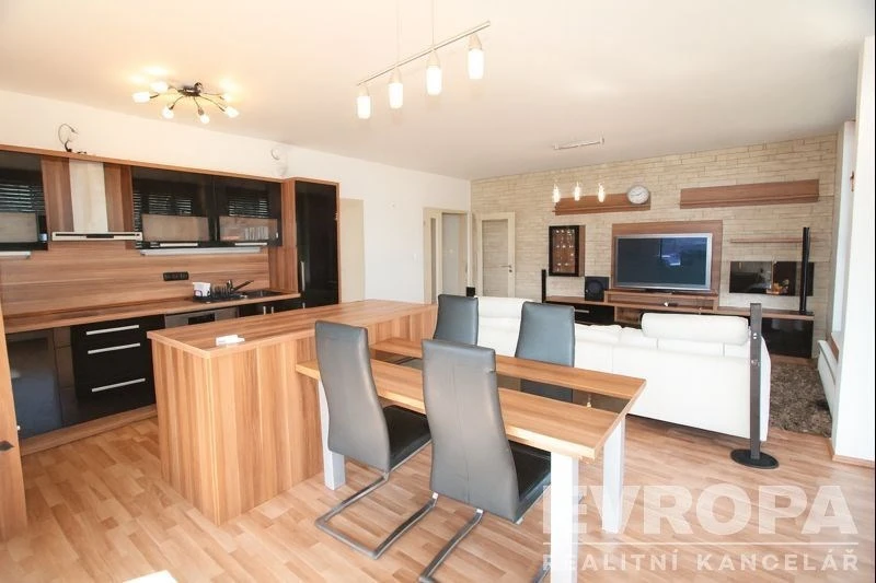 Vybavení bytu tvoří kuchyňská linka s ostrůvkem včetně všech spotřebičů, podlahy jsou laminátové a přírodními tóny, které ladí k rámům moderních eurooken. Vkusně provedené koupelny včetně koupelnového nábytku. Velké skříně v chodbě a v ložnici, police v komorách. Na oknech jsou žaluzie také předokenní automatické rolety. Vytápění a ohřev vody je centrální.