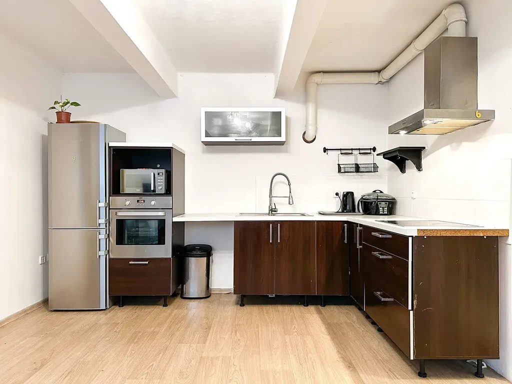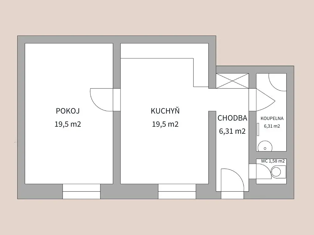 Přímo u vstupu se nachází zapuštěná terasa, kterou lze proměnit v útulné venkovní posezení – slunečník, stolek, bylinky v truhlících… Ideální místo na ranní kávu s výhledem do zeleně za domem. K bytu náleží sklepní kóje o výměře 5 m².