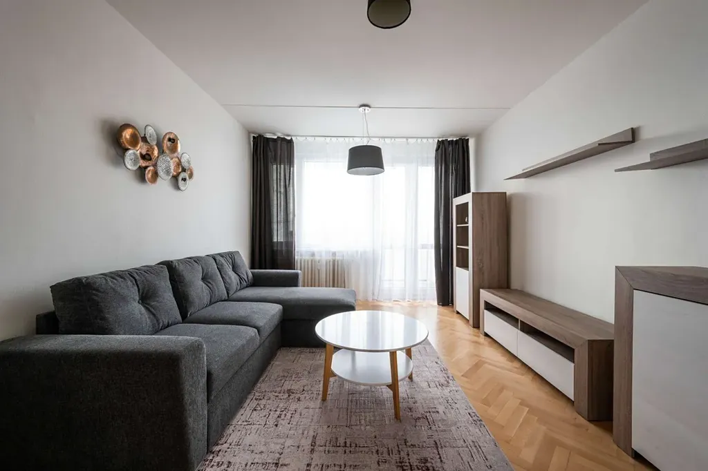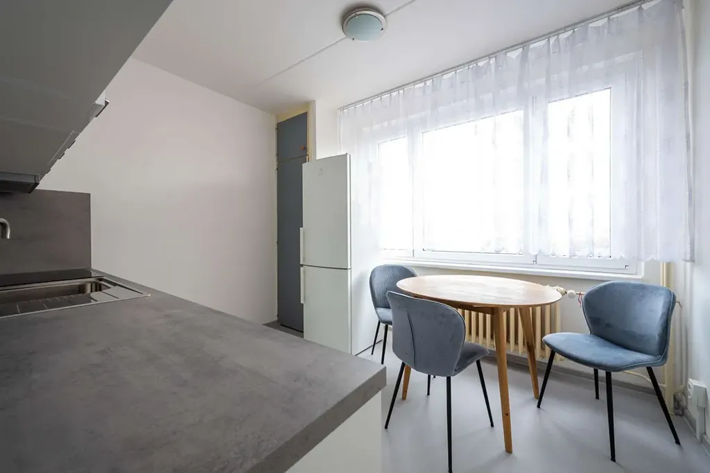 Kuchyň je zcela nová s varnou deskou, elektrickou troubou, digestoří a lednicí, jídelní stůl + 4x židle. V koupelně je sprchový kout a pračka, WC samostatně. V předsíni úložné prostory na oblečení i botník. V ložnici nová manželská postel, noční stolky a šatní skříně. Plně vybavený obývací pokoj nábytkem se vstupem na balkon. Vše co vidíte na fotkách, v bytě zůstává.