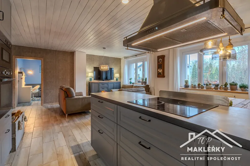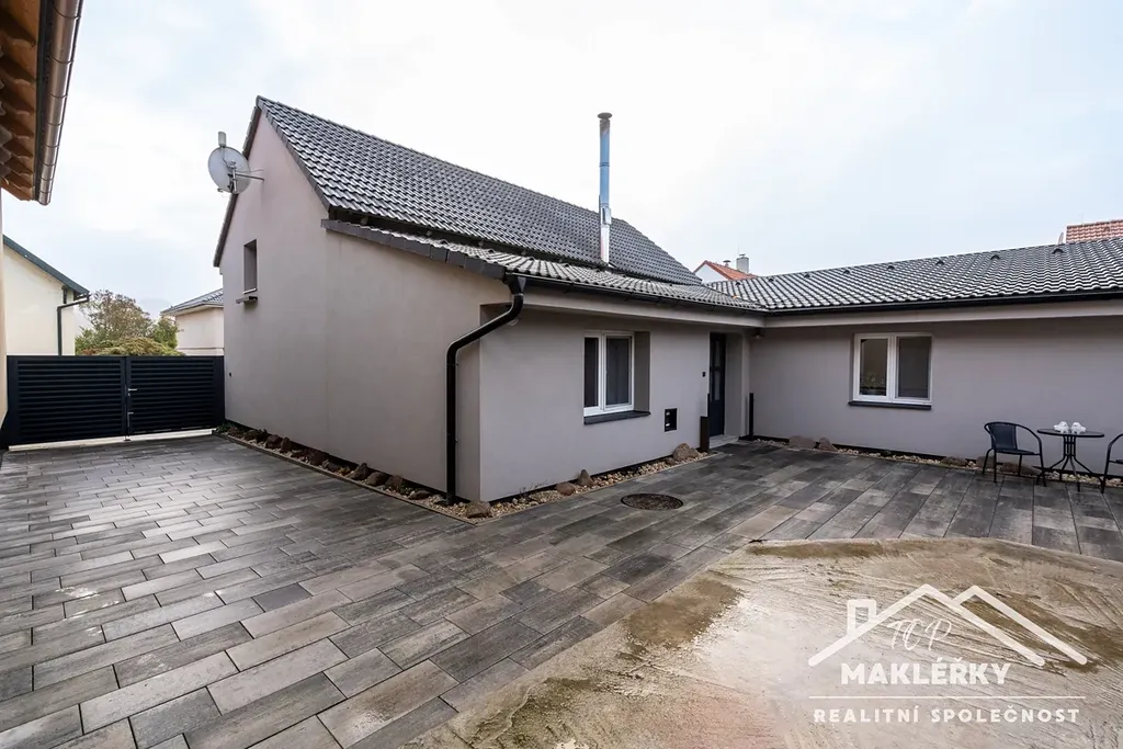 Co tedy po koupi můžete očekávat: plášť domu je kompletně odizolován 10cm vrstvou polystyrenu, nová fasáda, rozvody vody, kanalizace i rozvody topení. Elektřina vedená v mědi. Plastová okna s izolačním dvojsklem. Vytápění domu zajištují krbová kamna s výměníkem, kdo raději volí pohodlnější cestu, zatopí elektrickým kotlem. Na podlahách v celém domě dlažba. Na střeše betonová taška KM Beta. Voda přivedena z obecního vodovodu, odpadní voda svedena do obecní tlakové kanalizace. Na dvoře kvalitní, velkoformátová dlažba Best. Ve sklepě úpravna vody od společnosti Ivar cs. Půda je vyklizena a v části přístavby zateplena vatou a extrudovaným polystyrenem. Vedlejší stavby - kůlna a dřevník na 40 kubíků dřeva.