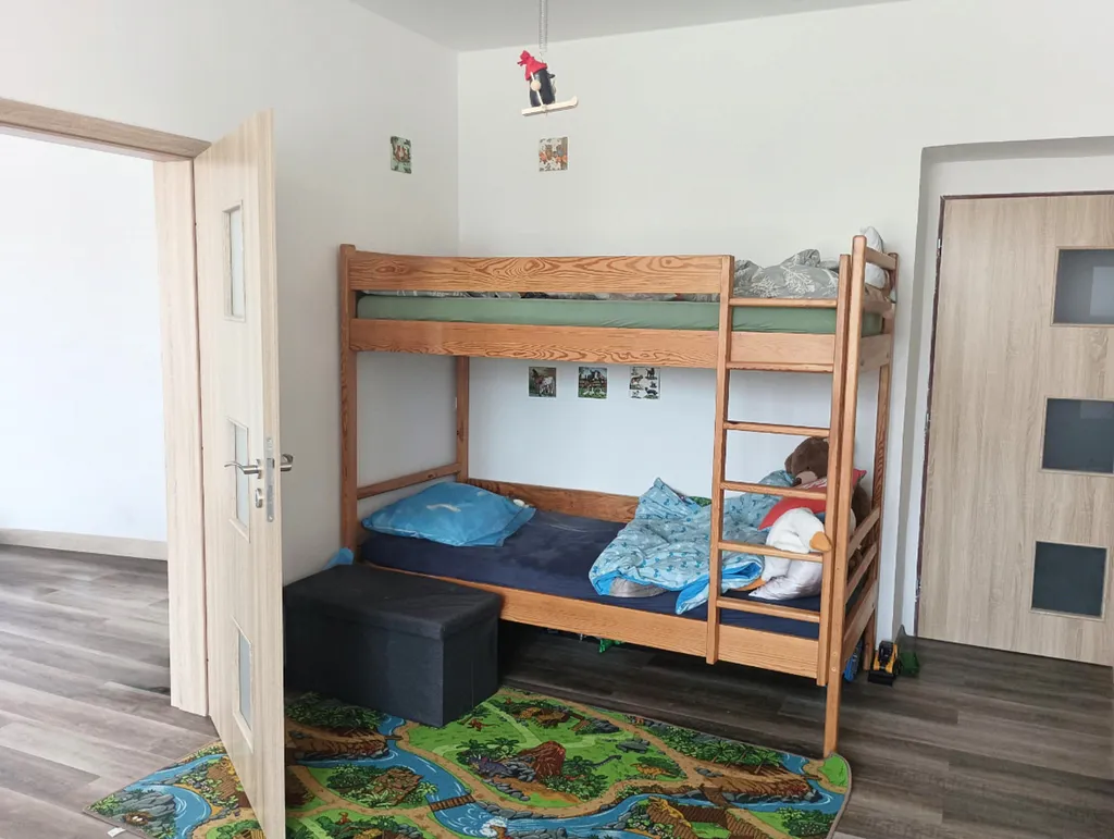 Dominantou obývacího pokoje jsou krbová kamna na dřevo, která dotvářejí příjemnou atmosféru domova. Nechybí ani prostorná ložnice, velký světlý dětský pokoj a netradičně řešený pokoj s mnohouhelníkovým půdorysem, který zaujme na první pohled.
