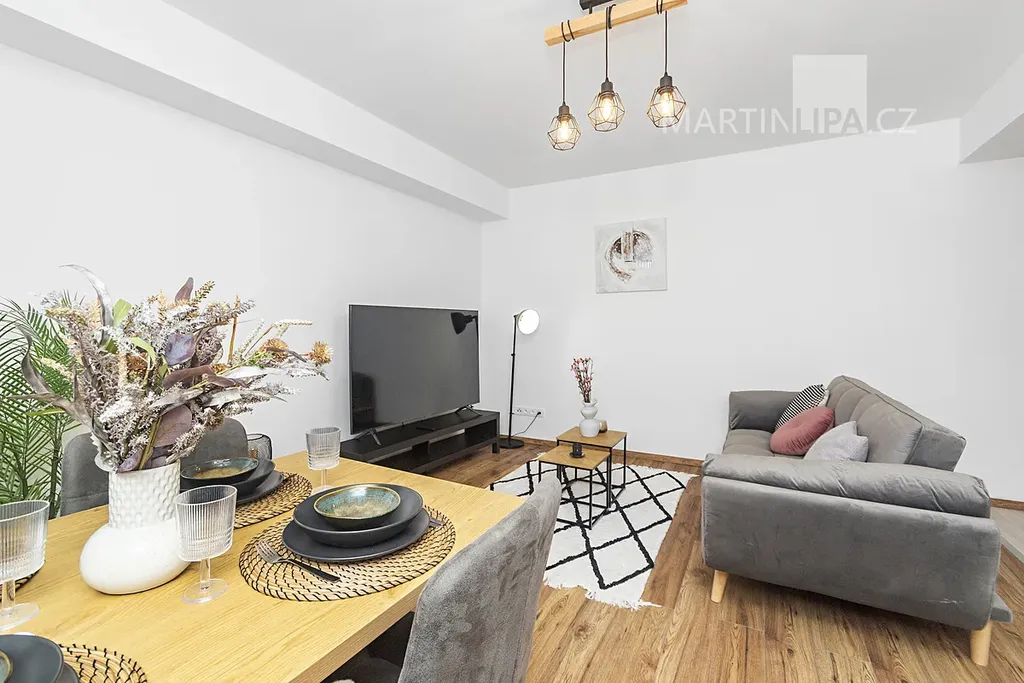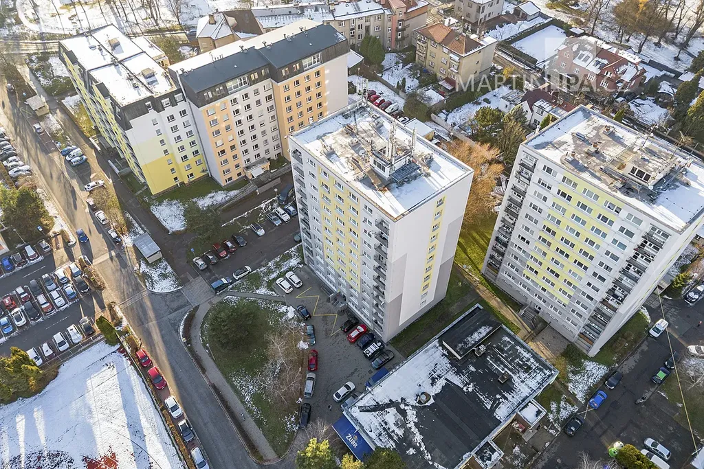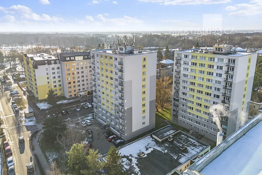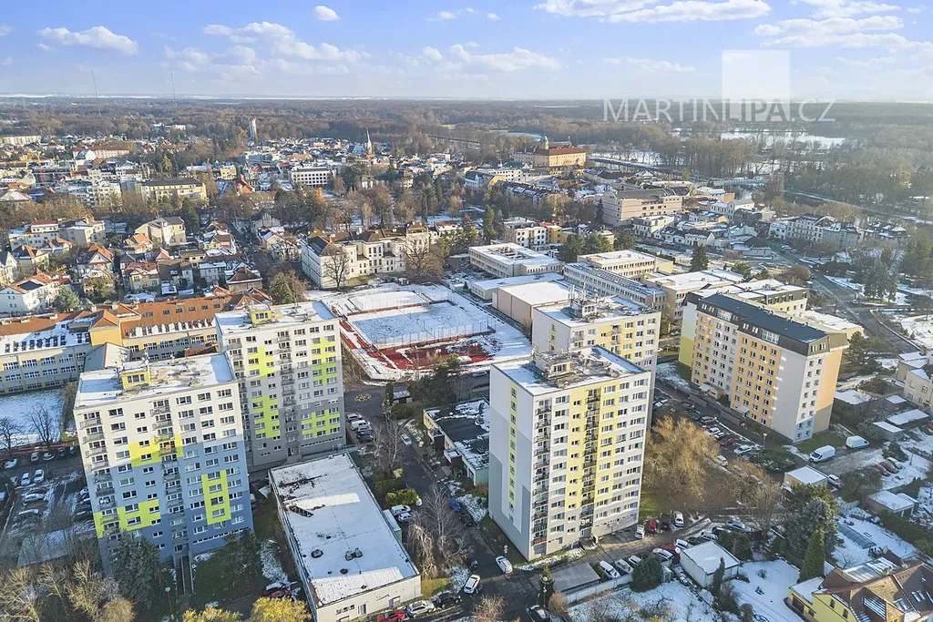 Sportoviště, školy, nákupy, náměstí i vlak máte na dohled. A když chcete vyměnit panel za kolonádu, lázeňský park a řeku, jste tam za pár minut. Večer se vrátíte nahoru, zavřete byt – a klid nad městem je zase váš.