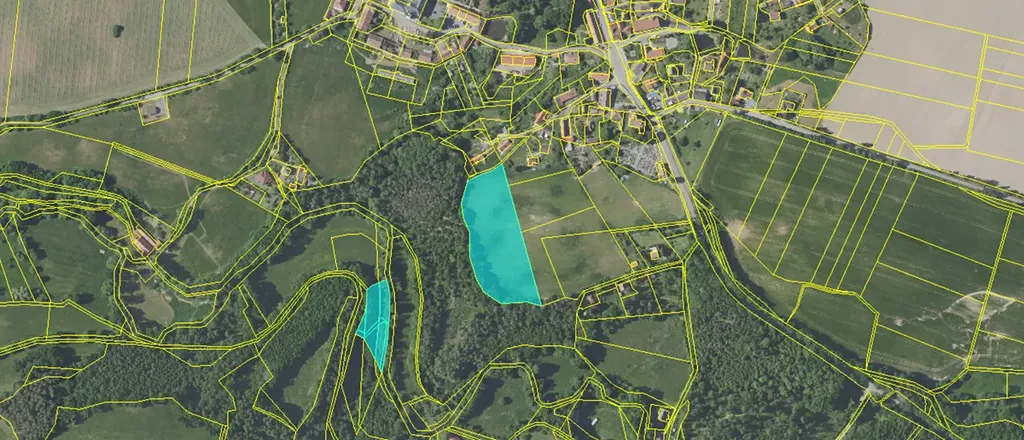Předmětem dražby je ideální podíl 1/6 pozemků o celkové výměře 12625 m2 v k.ú. Vojkov u Votic, obec Vojkov, okres Benešov.