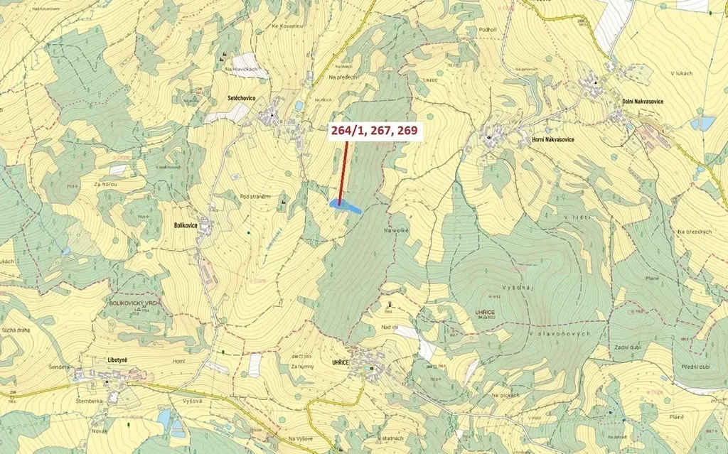 Trvalý travní porost a ostatní plocha o výměře 6 779 m2, parcelní čísla 264/1, 267, 269, podíl 1/1, katastrální území Setěchovice, obec Zálezly, obec s rozšířenou působností Vimperk, okres Prachatice, Jihočeský kraj.