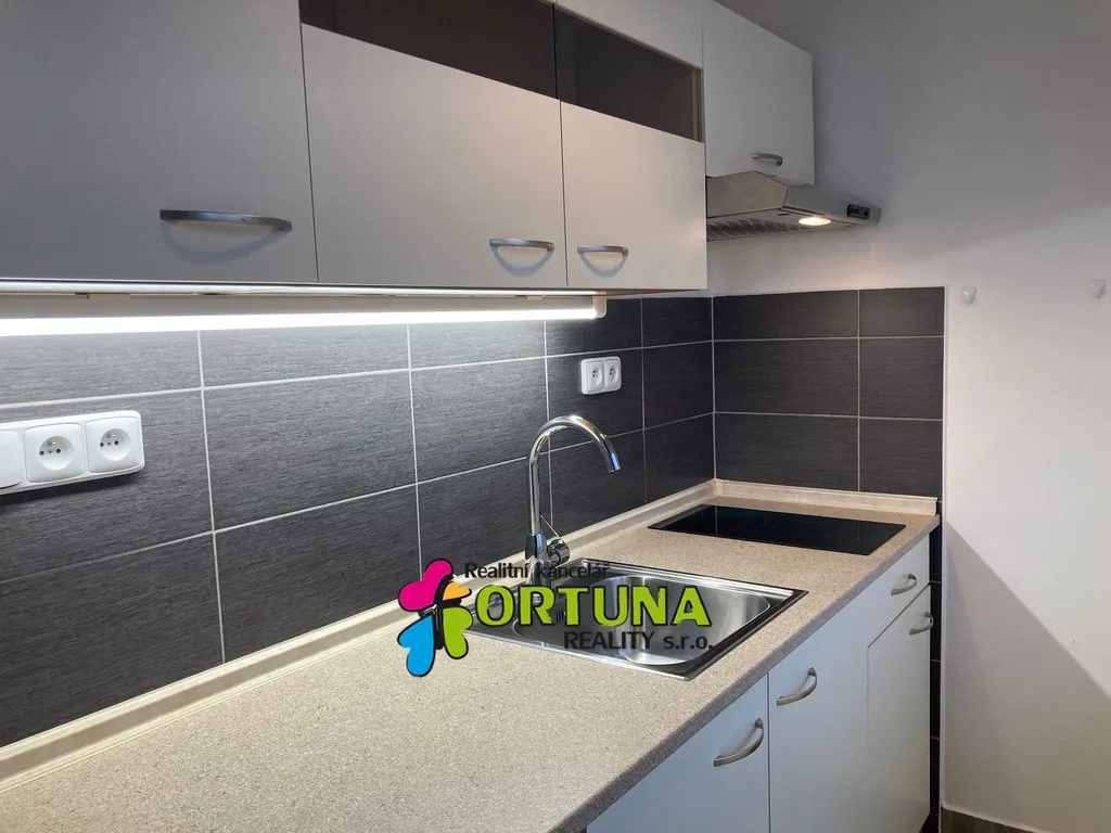 Nabízíme k pronájmu vkusně zrekonstruovaný a částečně zařízený byt 1+kk v 5. patře panelového domu. Byt byl kompletně rekonstruován v r. 2016 - jádro bytu (Ytong), rozvody vody v plastu, elektřina v mědi. Z předsíně je přímý vstup do koupelny se sprchovým koutem, pod umyvadlem je umístěna pračka a po straně je toaleta. Prostorný pokoj je propojený s kuchyňským koutem, který je prakticky oddělen od hlavního prostoru. Je vybavený vestavěnými spotřebiči - digestoří, lednicí a dvouplotýnkovou sklokeramickou varnou deskou. Okna včetně lodžie (6,5 m2) směřují do zeleně. Úložný prostor zajištuje komora o výměře cca 1 m2 umístěná vedle vchodu do bytu.
