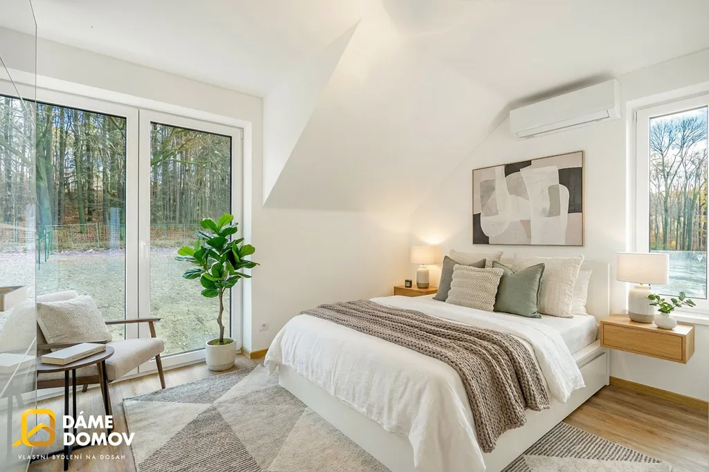 Dominantou domu je prostorný obývací pokoj s kuchyňským koutem, který nabízí ideální zázemí pro rodinný život i setkávání s přáteli. Ložnice a dětské pokoje poskytují dostatek soukromí a klidu. Velkým benefitem je také praktická technická místnost, vhodná jako prádelna i úložný prostor pro sezónní věci.